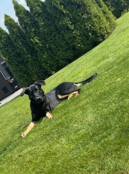 Beschreibung: Folgende Beschreibung haben wir zu Amy von ihrer Besitzerin erhalten: Amy ist eine neun Monate alte Schäferhundmix-Hündin aus einer deutschen schwarzen Schäferhündin und einem Appenzeller-Schäferhund Mix. Beide Eltern sind sehr lieb und sozial verträglich und haben keine Probleme in Bezug auf Hüftdysplasie und sonstigem. Es sind reine Familienhunde und meine Hündin ist keine Leistungszucht. Die Welpen kamen bei mir im Wohnzimmer auf die Welt und haben alles kennengelernt was nur geht, sodass sie sehr nervenstark und ruhig sind. Sie haben ein großes Menschenvertrauen und lieben Kinder. Ich habe Katzen und Pferde und das alles ist kein Problem. Amy ist sehr gehorsam und dankbar. Sie ist ein Hund der für seine Familie durchs Feuer geht. Sie kann gerne zu Kindern vermittelt werden, aber die Familie sollte sich der Größe und auch dem Anspruch an Bewegung bewusst sein. Sie ist absolut wesensfest, Kopf sauber und berechenbar. Sehr treu und anhänglich.