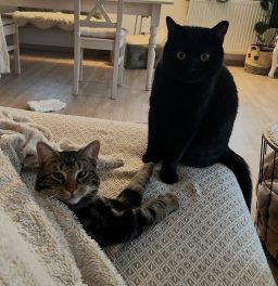 – Die beiden lieben einander und kuscheln auch ab und zu. Sie lecken und necken sich gelegentlich, aber es gibt keine Revierkämpfe mehr. Charlie hat sich auf lange Sicht durchgesetzt, er hat meist das letzte Wort, und Cosmo unterwirft sich, wenn nötig.