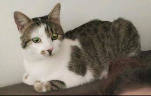 Seppl (grau braun getigert mit weiß), etwas mehr als 1 Jahr alt, chronisch krank, sucht ein neues Zuhause.