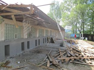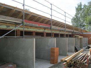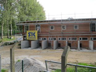 Nach intensiven Planungen im Jahr 2011 wurde Anfang Mai 2012 mit dem Bau begonnen. Die Arbeiten zogen sich – bedingt durch Winterpause und Ausfallzeiten – bis Juni 2013 hin. Im Herbst 2013 wurden die Außenanlagen gestaltet, Ende Oktober 2014 der Neubaubereich aus Sicherheits- und Lärmschutzgründen mit einem 94 Meter langen und zwei Meter hohen Lärchenholzbretterzaun umgeben.